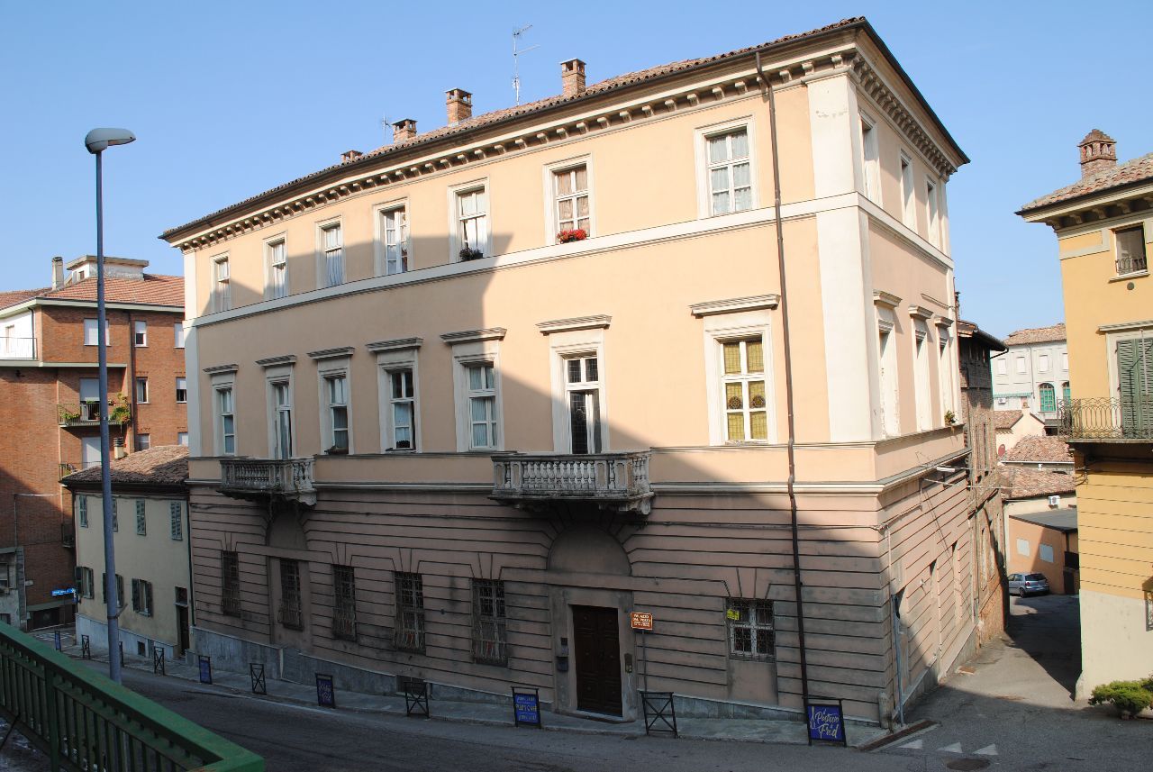 Questo elegante palazzo nobiliare, risalente al periodo della Restaurazione, è un perfetto esempio dell’architettura piemontese ottocentesca, con una facciata sobria che racchiude al suo interno ambienti riccamente decorati. Tra questi, spicca la splendida sala da ballo al piano terra, adornata da affreschi attribuiti alla scuola di Guglielmo Caccia, detto il Moncalvo, uno dei massimi esponenti della pittura sacra seicentesca.